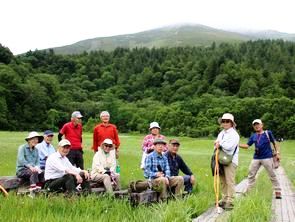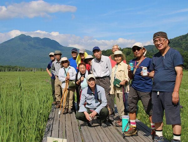 | 今年のOBG山行は石野&伊藤両幹事の主導で、第7回以来20年ぶりになる尾瀬ヶ原に決まった。数台の車に乗り合せて予定通り尾瀬戸倉の道の駅に集合。軽い昼食を摂った後に戸倉駐車場から乗り合いタクシーで鳩待峠入りしたのは正午を少し過ぎた頃だった。不順な天候に気をもんだ計画だったが、朝から好天に恵まれた。